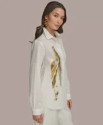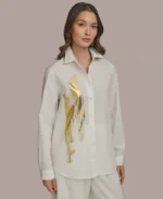 Be the first to review “Women’s Metallic Brushstroke Button Down Shirt” Cancel reply